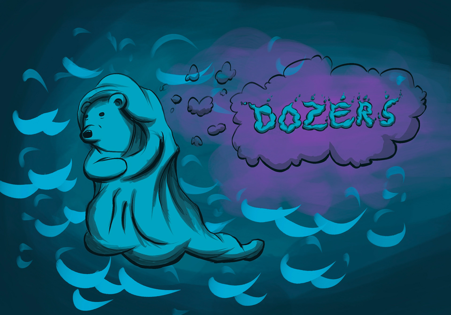 USC Delta Omicron Zeta's fall recruitment theme was "Dozers," a play on DOZers and a dreamy nighttime aesthetic. In discussing the theme, we considered classic cartoons and children's books that were nostalgic to us. We found that bears showed up in these a lot, whether it be through shows like "We Bare Bears" or real life Teddy Bears. The bear idea felt like it fit very well for our theme, so I used that in our sketches.